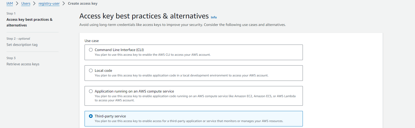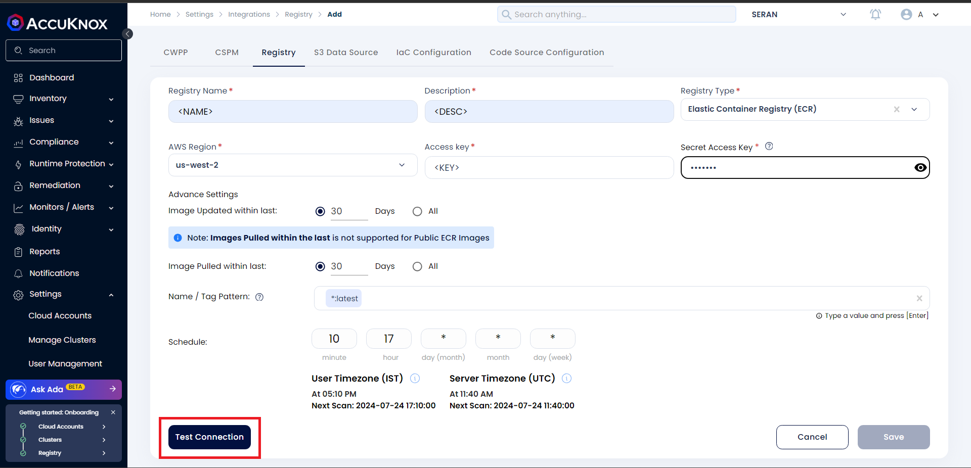Step 2: Enter the Registry Name, Registry Type, AWS Region of the ECR Registry along with Access key and Secret Access key from the IAM user that was copied.