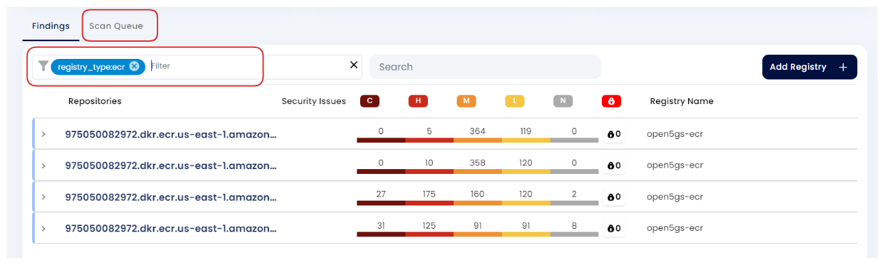 Step 3: A popup appears that the registry is added on successful onboarding. Navigate to Issues → Registry Scan to view the scan results. You can check the status of the scan from the Scan Queue tab