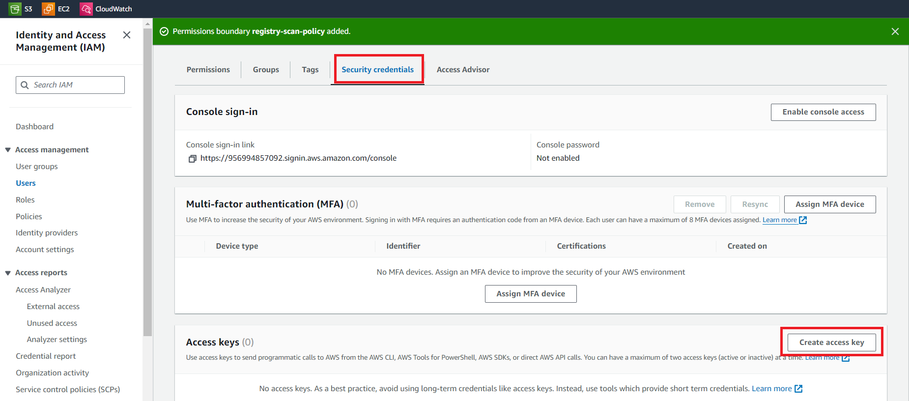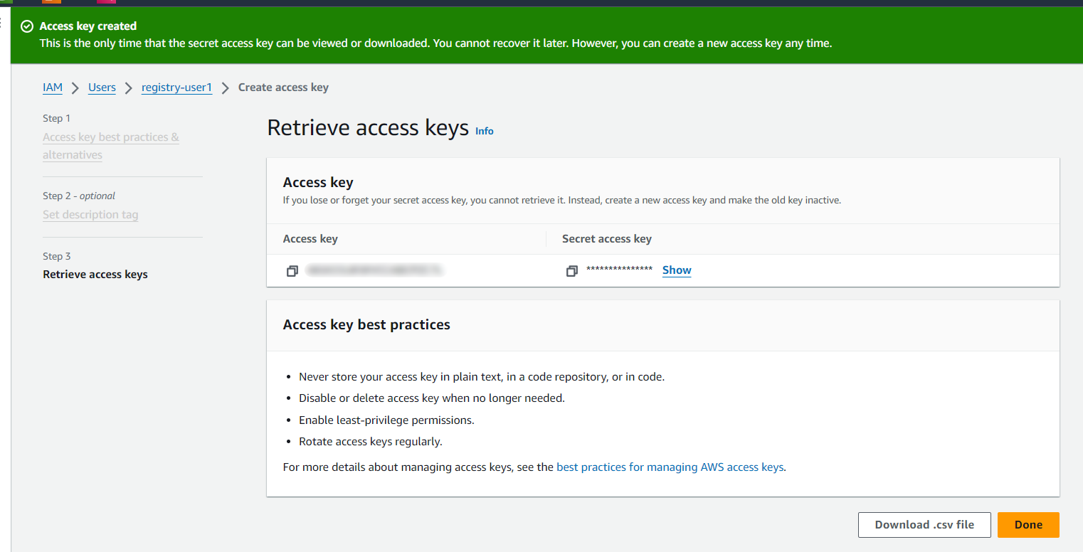 Copy the Access and Secret Access Keys for onboarding the registry on AccuKnox SaaS.